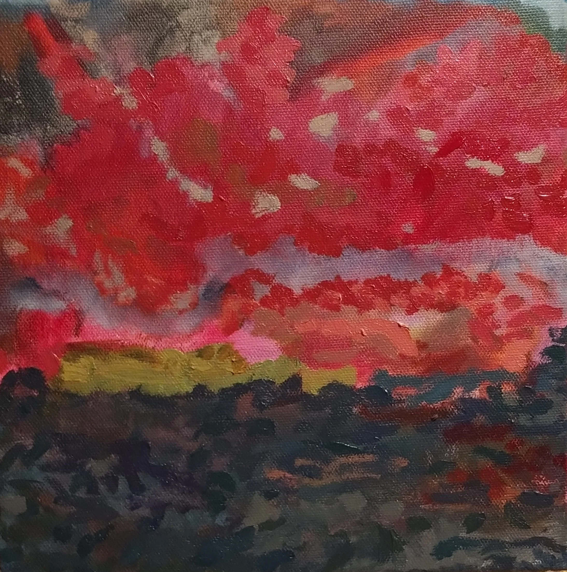 they're all tucked in for bed over there, 8"x8" acrylic on stretched canvas